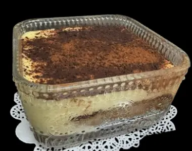 Crema al mascarpone, savoiardi, caffe', cacao amaro.