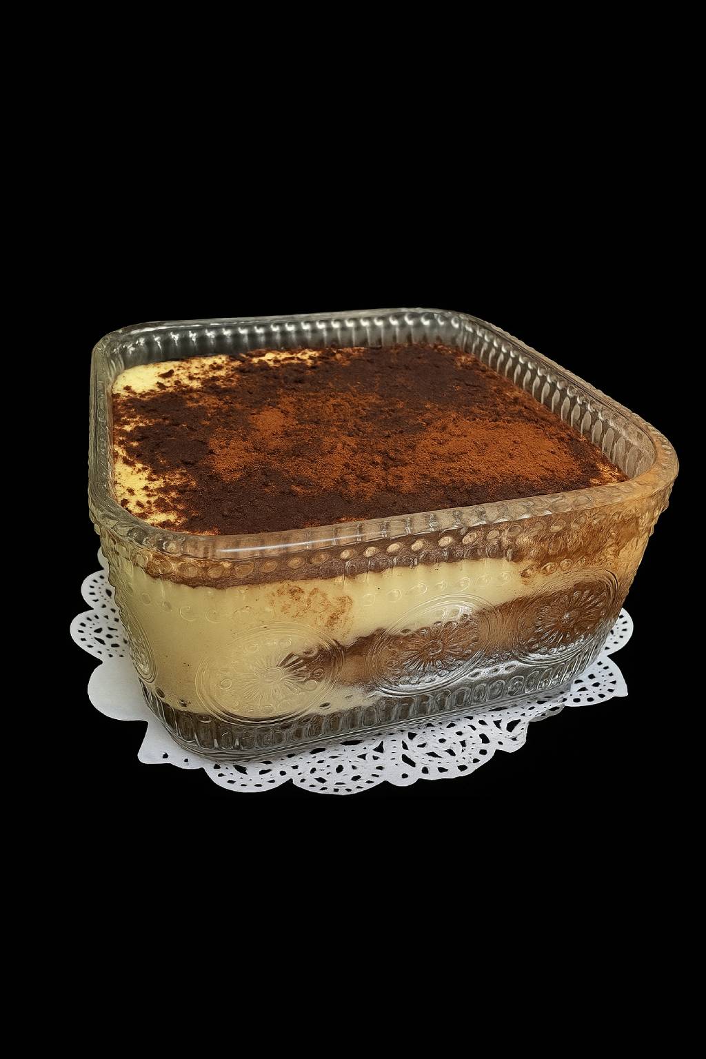 Crema al mascarpone, savoiardi, caffe', cacao amaro.